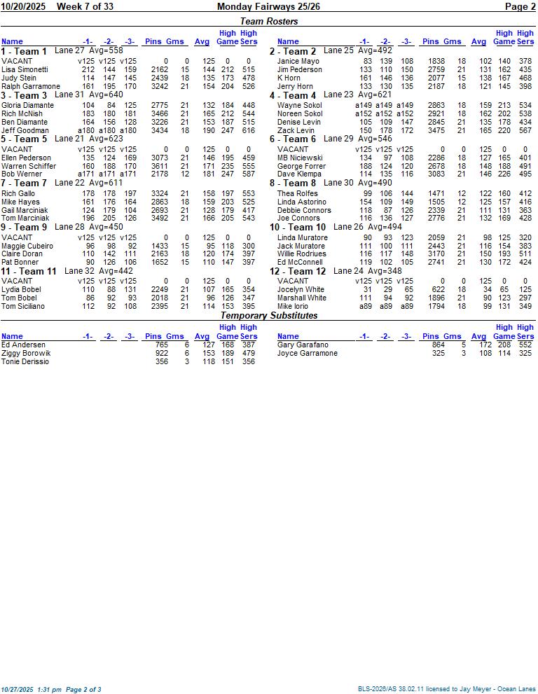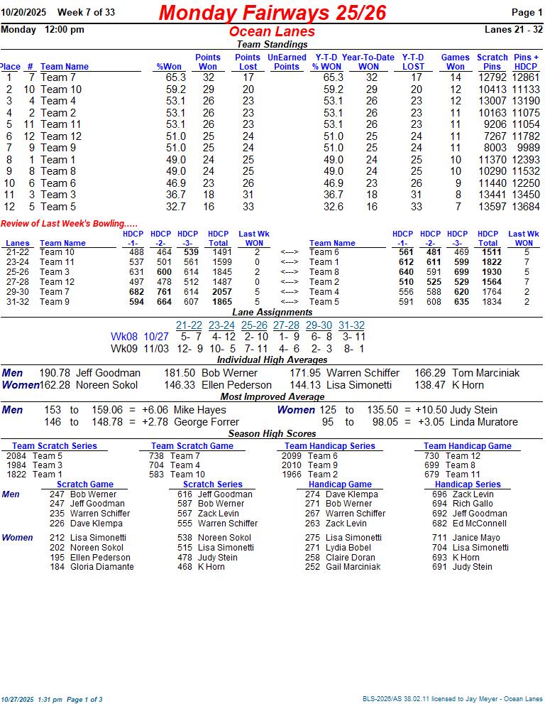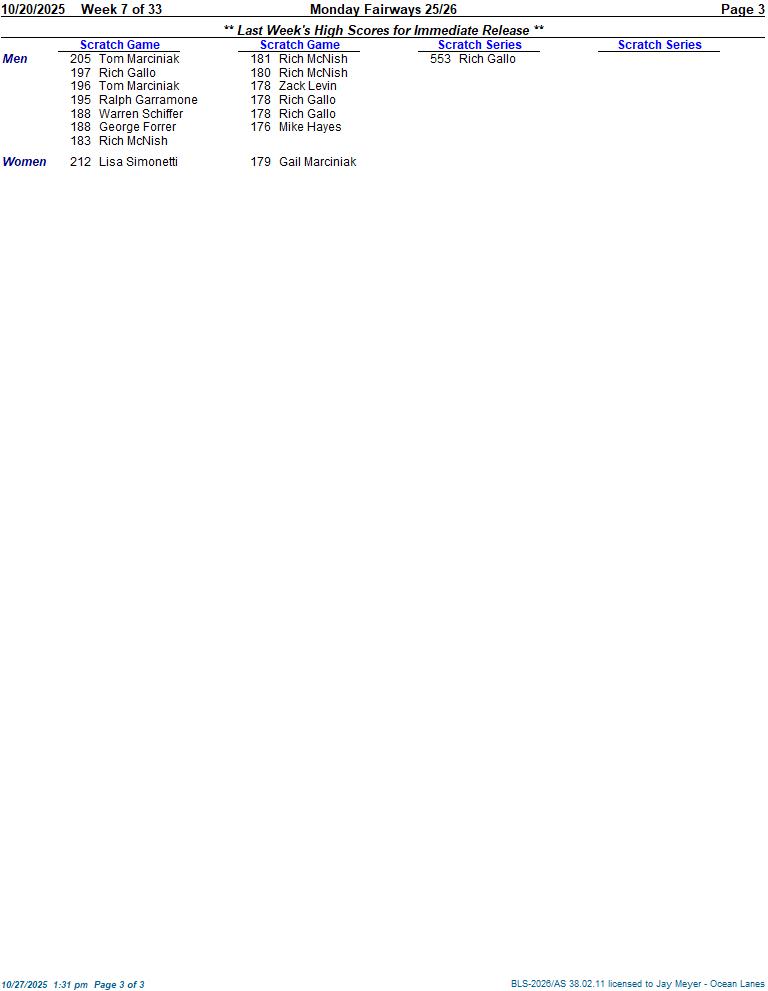 Monday Fairways 25/26